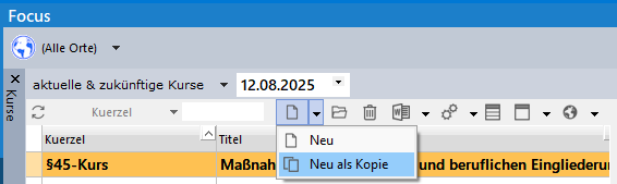 Sie wählen im Focus nun nicht Neu sondern “Neu als Kopie” aus: