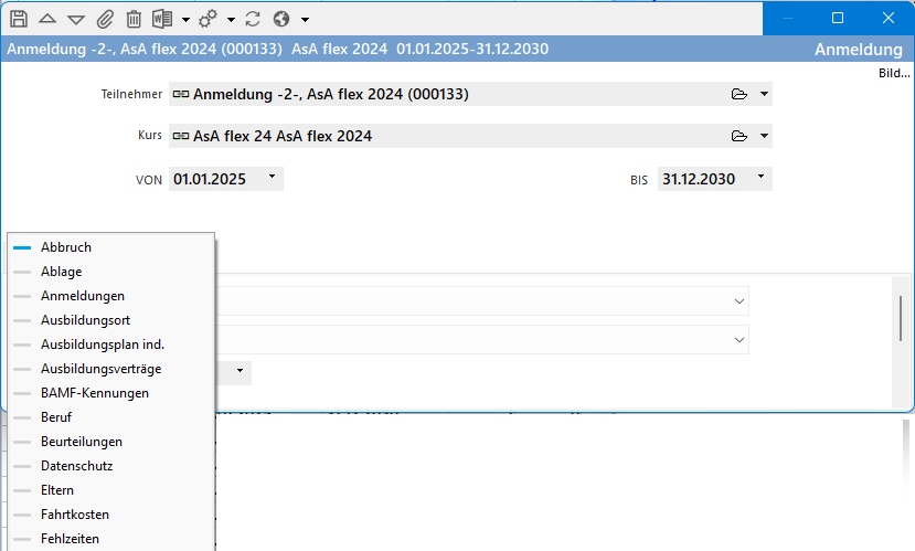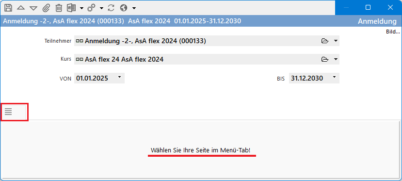 Auf diese Weise benötigen Sie nur eine Registerkarte für verschiedene Ausbildungsorte, Kurse, Teilnehmer etc. gleichzeitig.