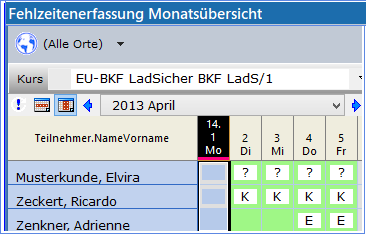 Auf diese Weise lassen sich gute Übersichten bzw. Fehlzeiten- oder Anwesenheitslisten ganzer Kurse erstellen – inkl. Ein- und Austritt jedes einzelnen Teilnehmers.