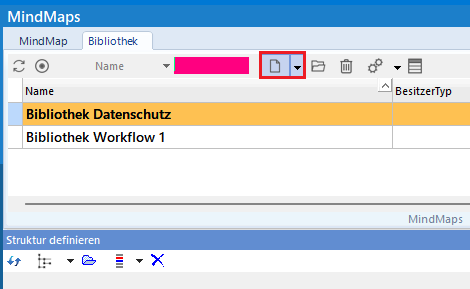 3. “Neu” anklicken zur Suche von Elementen, die in diese MindMap-Bibliothek aufgenommen werden sollen.