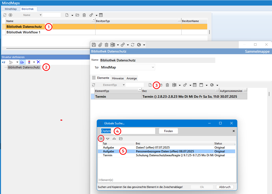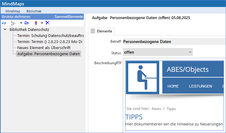 MindMaps sind eine besondere Art der Sammelmappe, in der Sie Objekte und deren Inhalt strukturiert darstellen können.