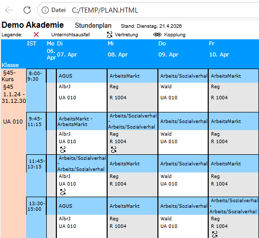 Die “Plangültigkeit” wird auf dem Plan mit ausgegeben. Wenn die Plangültigkeit vom Zeitraum abweicht, wird bei den einzelnen Wochentagen dann kein Datum mitgedruckt (wenn der Plan längere Zeit gültig ist).