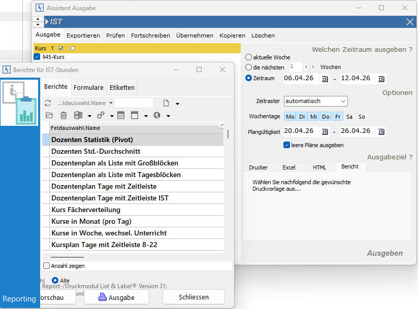 7. Ausgabe – Kurs-, Dozenten- und Raumpläne drucken
