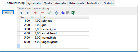 In vielen Fällen wird eine Note auf dem Zeugnis in einer anderen Form dargestellt, als bei der Notenerfassung.
